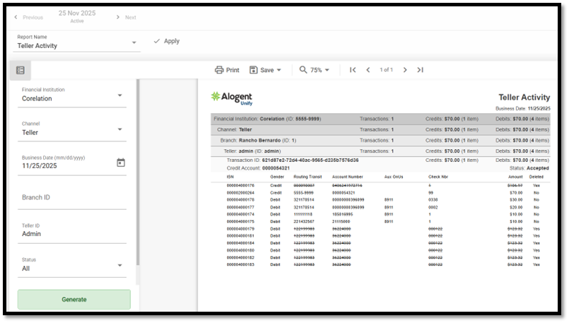 Step 2: Tellers, supervisors, and accounting teams can use this information to reconcile against core system totals, ensuring all daily activity aligns across systems.