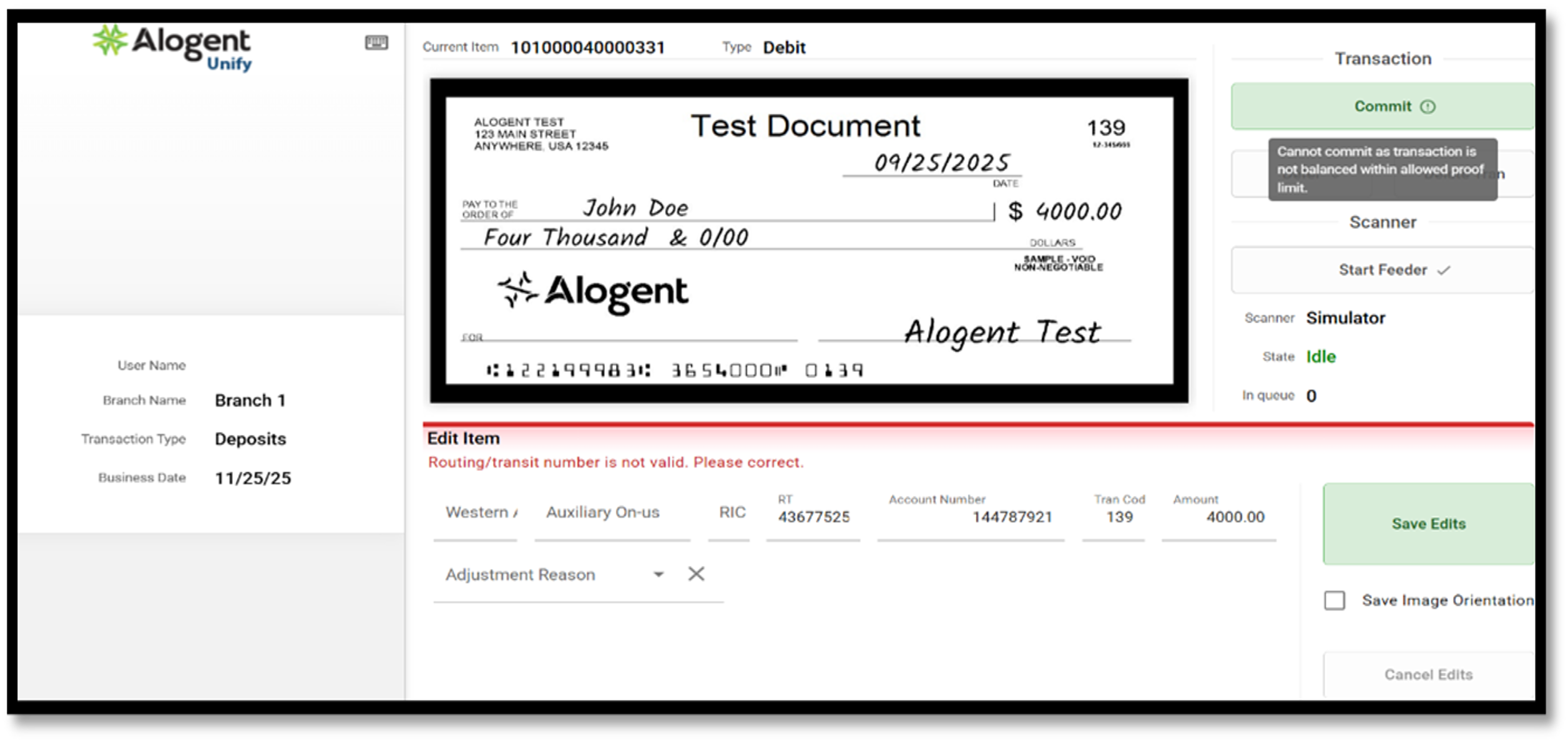 Looking to streamline your teller line operations while reducing fraud risk and improving efficiency? Unify, Alogent’s award winning enterprise deposit automation platform, streamlines deposit capture across all channels, including in-branch capture, remote deposit, and back-office efficiency. With real-time validation, configurable business rules, and seamless integration to your core, Unify empowers frontline staff to process transactions with speed and accuracy, while reducing the burden of manual review across your entire institution.