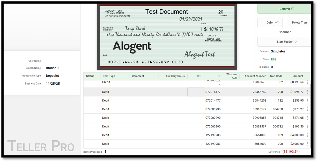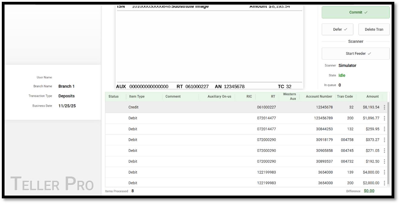 Step 5: Once all checks pass validation checks, the teller submits the items for posting to the core system. Transactions are committed to the Unify database to begin the clearing process.