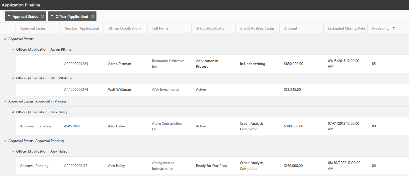 Example: Let’s imagine that a commercial customer requests a revolving line of credit, and your financial institution uses AccuApproval to manage the approval process. The initial documentation has been added to the correct tabs in AccuAccount, and the application is ready to be routed to an analyst group. Within moments, members of the analyst group will receive emails that contain a link to the application in AccuApproval. They can click the link, perform their analysis, and route the file to the next user or team. Failing to take action in a timely manner would result in an exception.