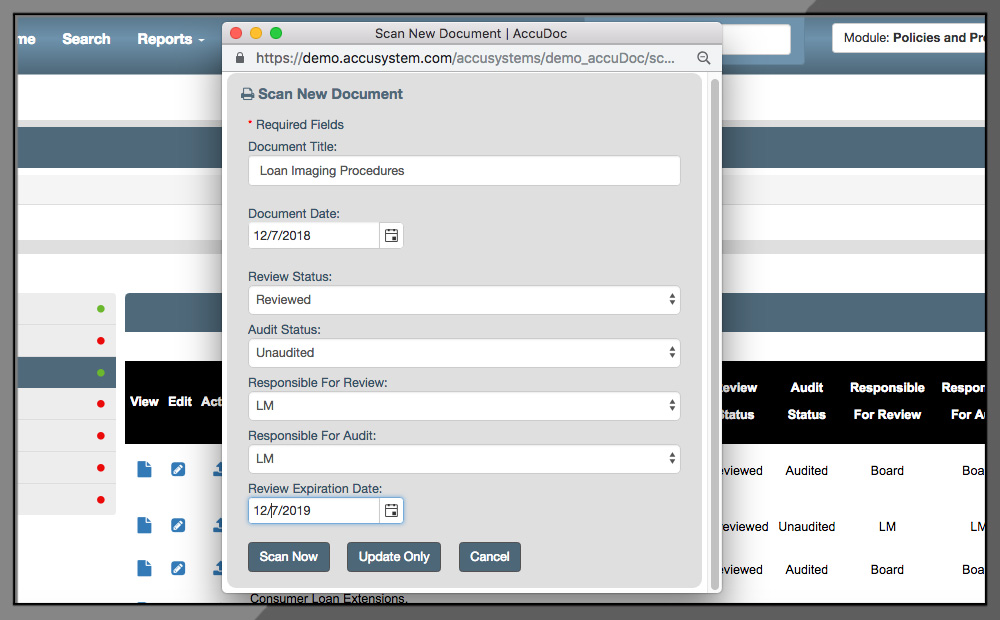 Does your bank or credit union need a more streamlined approach to managing its imaging policy and procedures? Ready to move beyond three-ring binders and paper documents? Perhaps it’s time to schedule a free demo of AccuDoc.
