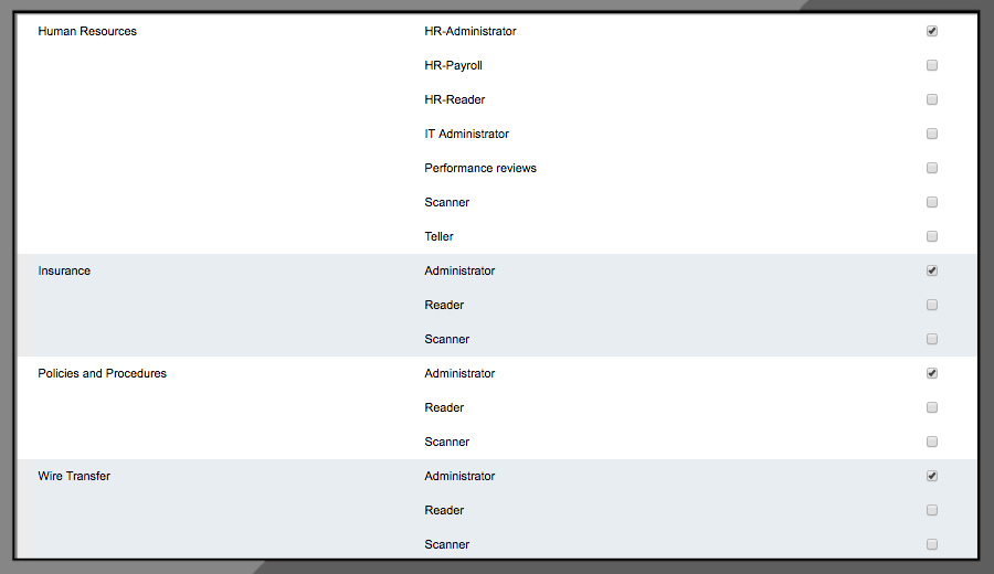 To maintain proper control, AccuDoc allows your bank or credit union to define and manage user permissions. Each user can be given varying levels of access (admin, scanner, reader, etc.) for each AccuDoc module, providing the right mix of accessibility and control.