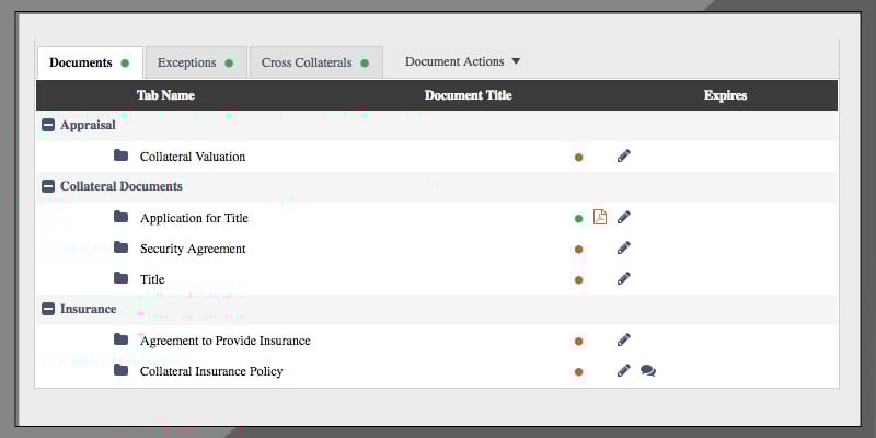 Before your financial institution lends a dime to a new commercial customer, there are certain document tracking responsibilities that must be attended to. Here are a couple common examples:
