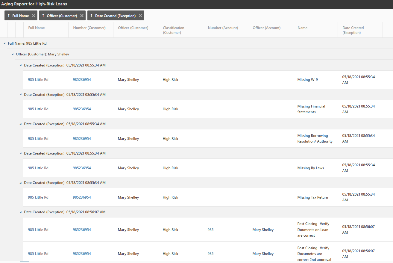 Borrowers’ financial situations can change due to unexpected shifts in market conditions, interruptions in business operations, cash flow challenges, and many other reasons. Financial institutions rely on risk ratings to efficiently identify loans that represent higher risk. However, connecting this risk rating data with exception data often requires manual data joins, which delays customer or member engagement and exception resolution.