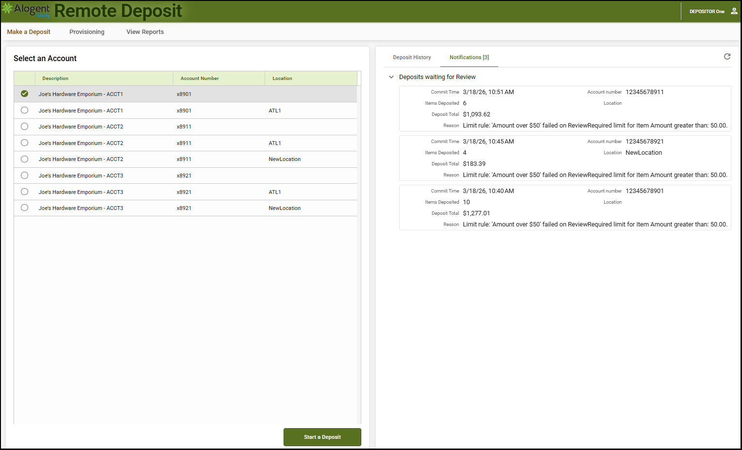 Submitted transactions are evaluated against predefined deposit limits and exposure thresholds. Items exceeding configured rules can be automatically rejected or routed for review, depending on configured policy.