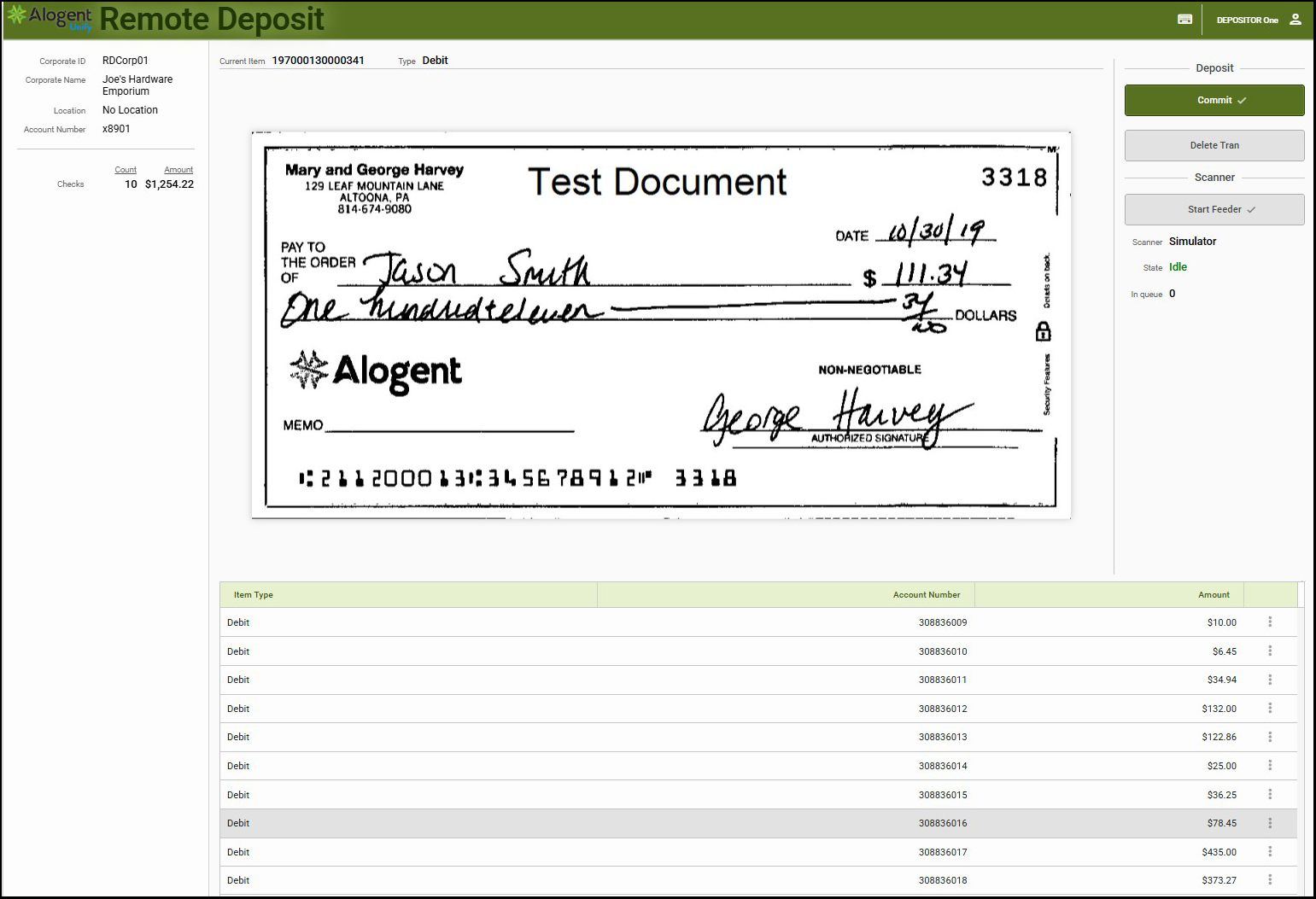 A corporate or merchant user logs into their online banking portal and selects the deposit capture option. Once successfully authenticated, the user will be redirected to the deposit interface that allows them to:
