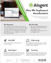 Alogent offers the ability to convert images from other products, import data from the bank core and loan origination systems, document imports directly into AccuAccount and interfaces with barcodes from doc prep systems. In this brochure, we explain at a high level of what conversions and interfaces we've completed. Our Team is always willing to work with other products that are not listed in this document. If there is another product that is not listed, you can contact us.