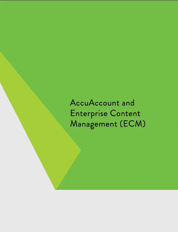 Many people believe that an ECM system is merely a document imaging system. Unlike simple document imaging solutions, a robust ECM is a software system that allows for the indexing, management, and retrieval of documents in various formats through a single interface. A sound electronic content management strategy is becoming a necessity at financial institutions throughout the country. AccuAccount helps financial institutions manage their own best practices that provide for the effective, open, and visible management of your customer and account records. This can lead to better compliance and increased confidence that proper monitoring has been put into place.