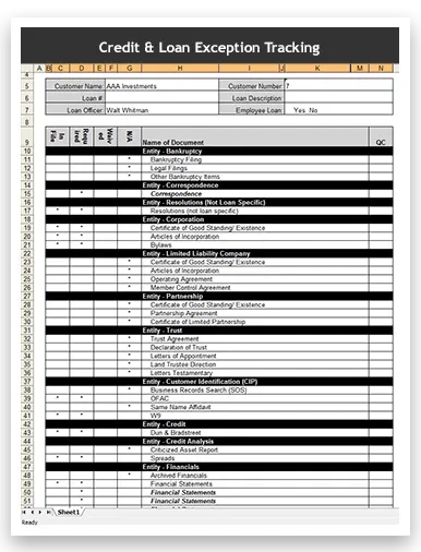 Loan Exceptions Documentation Tracking Workbook for Compliance